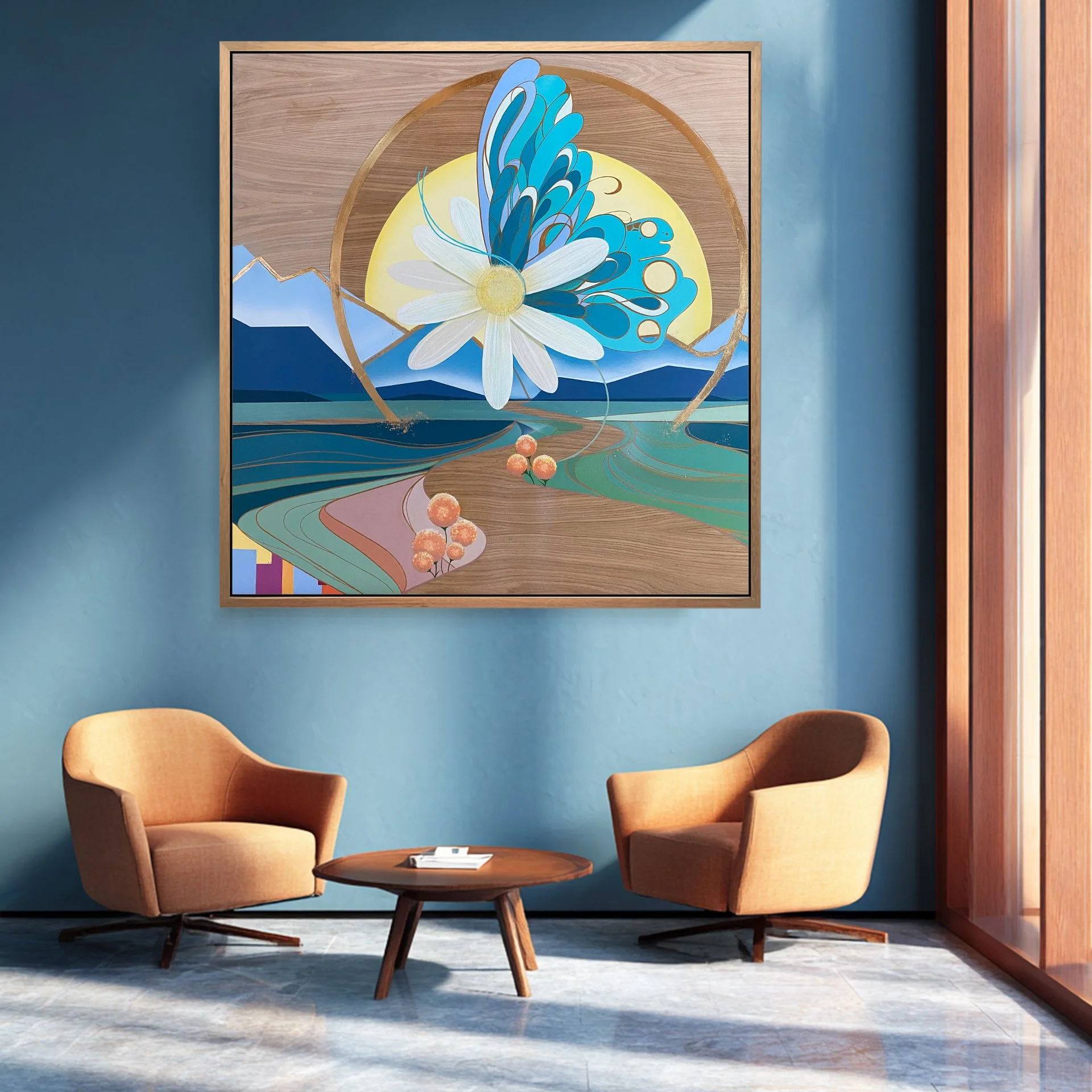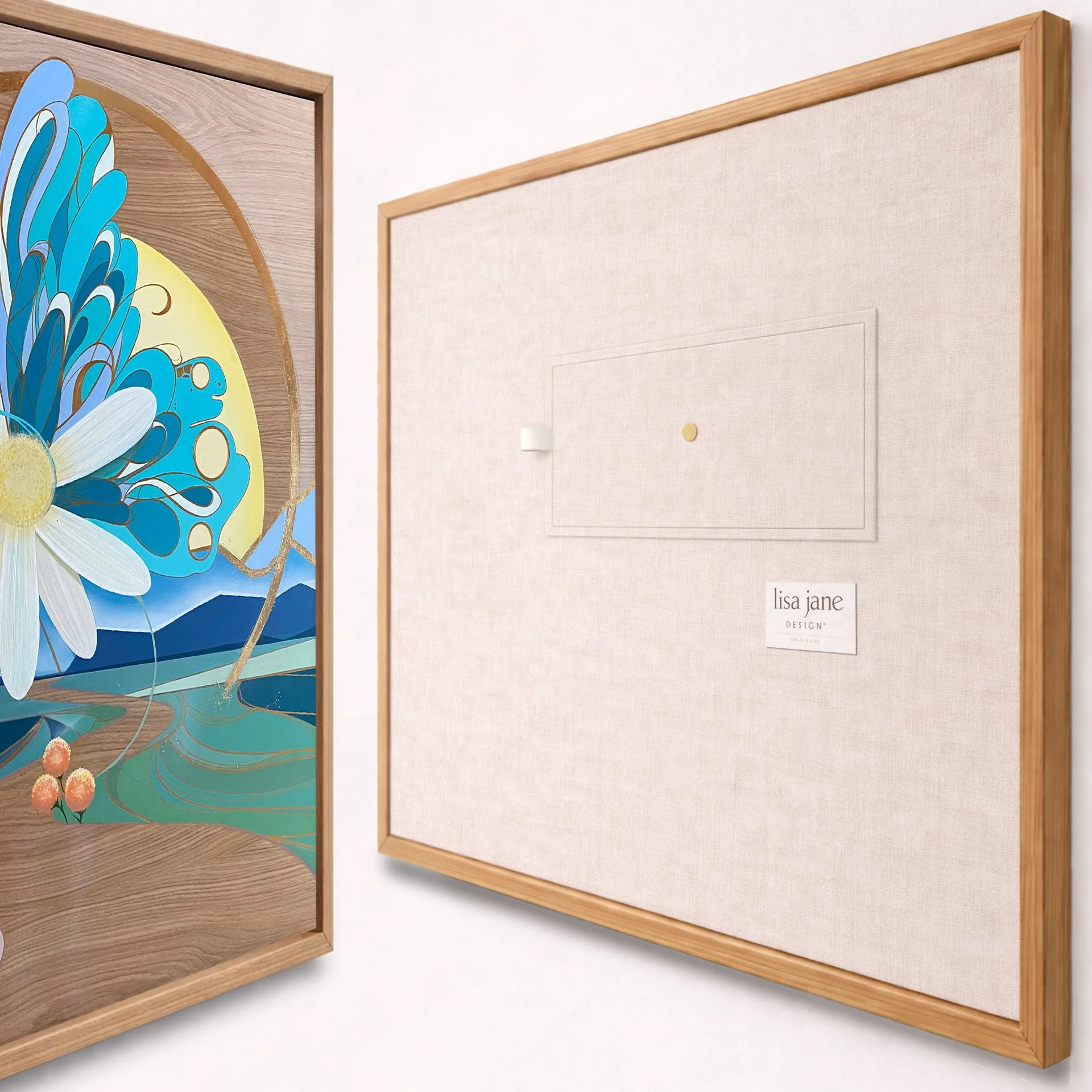 Visualize into a custom composition, painted by hand on natural wood.