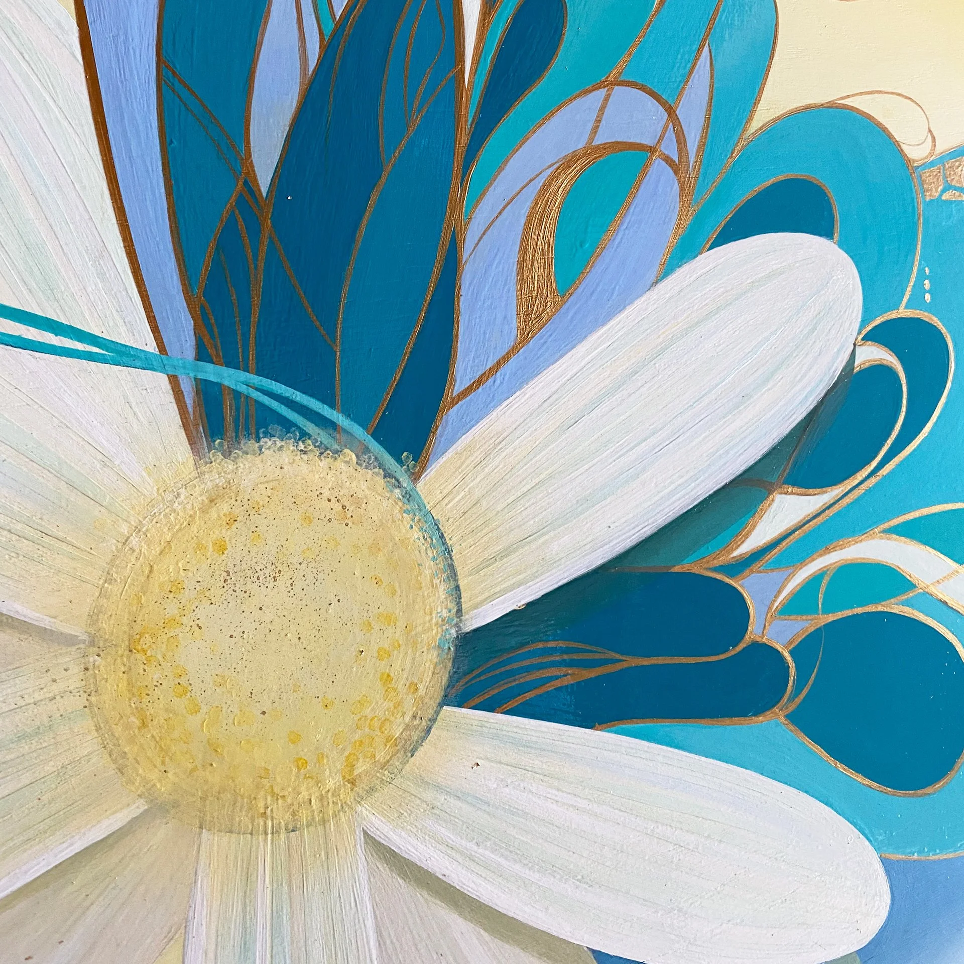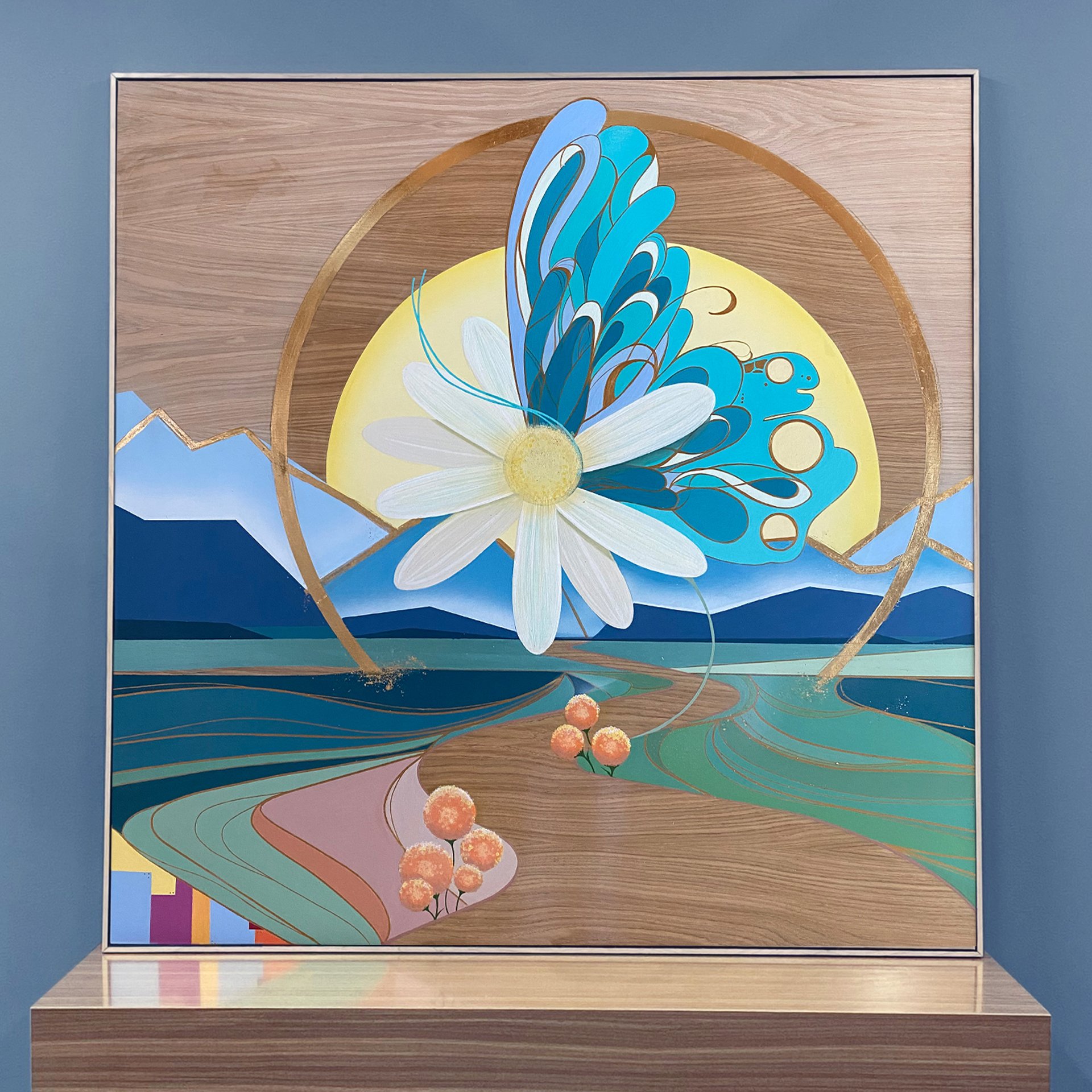 Painted on a 48" × 48" natural wood panel with artist-grade acrylics, 24k gold leaf, and archival varnish.
